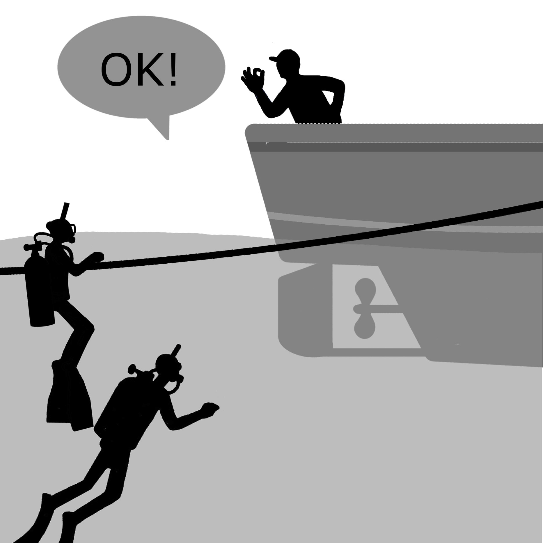 スクリューが動いているボートには近づいてはいけません。 ボートのスタッフからスクリューが停止していることを確認してからボートに接近します。 カレントラインがある場合には、これにつかまりエキジットの順番を待ちます。 カレントラインがない場合には、グループ全員が離れないようにエキジットの順番を待ちます。