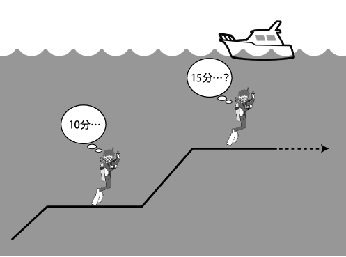実際のダイビングで、ダイブコンピューターの表示を確認してみましょう。 ダイブテーブルにはない特別な表示があります。