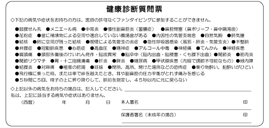 3.健康状態に疑問がある方には、ダイビング参加前にDANJAPAN発行のメディカルチエックフォームでドクターの診断を受けさせて、ドクターから潜水許可を得ましょう。