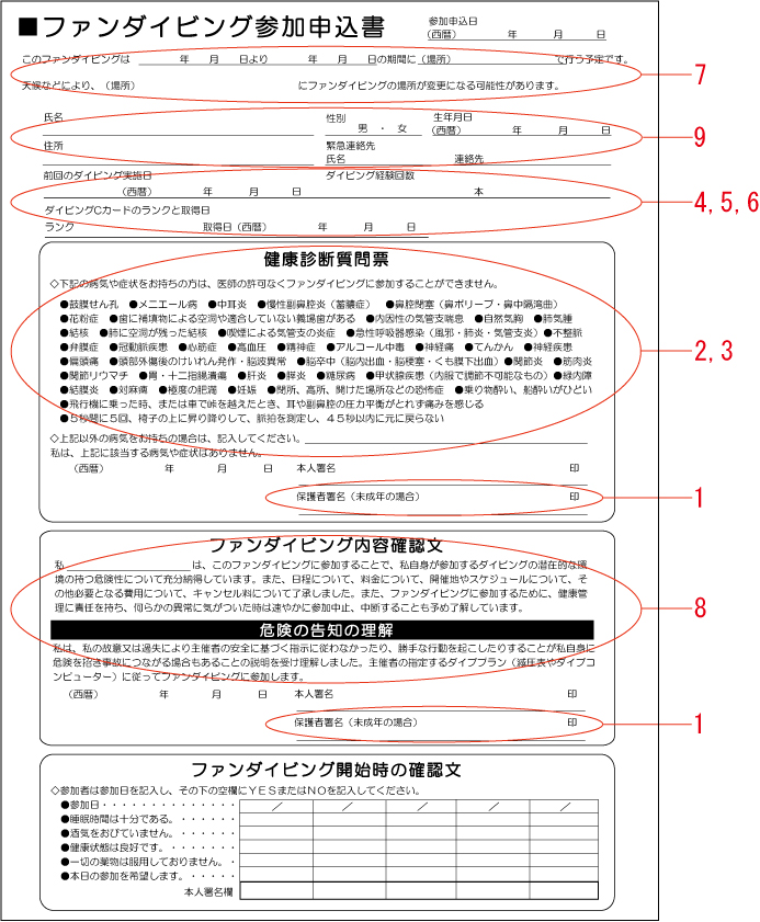 1.ダイビング参加予定者が満20歳未満の場合には、保護者の同意を取りましょう。